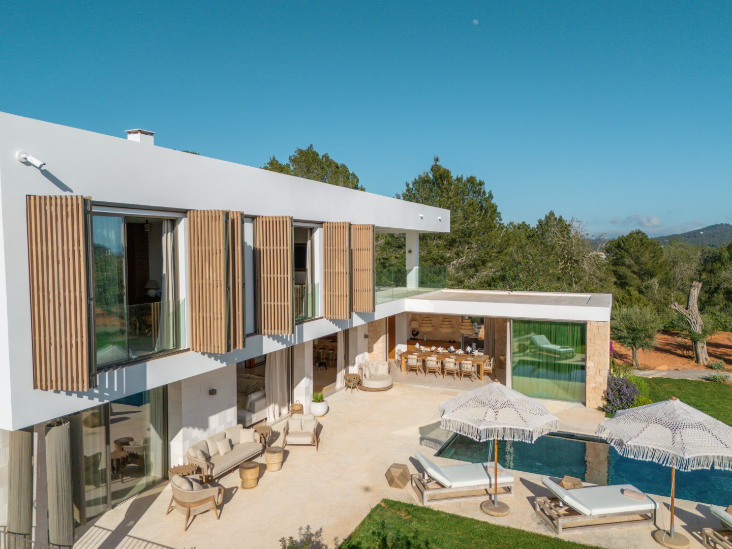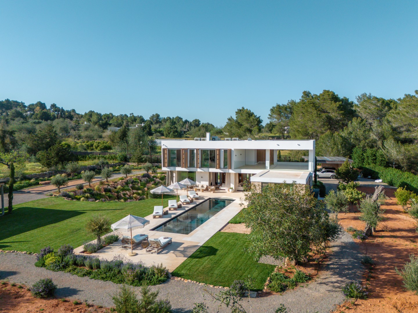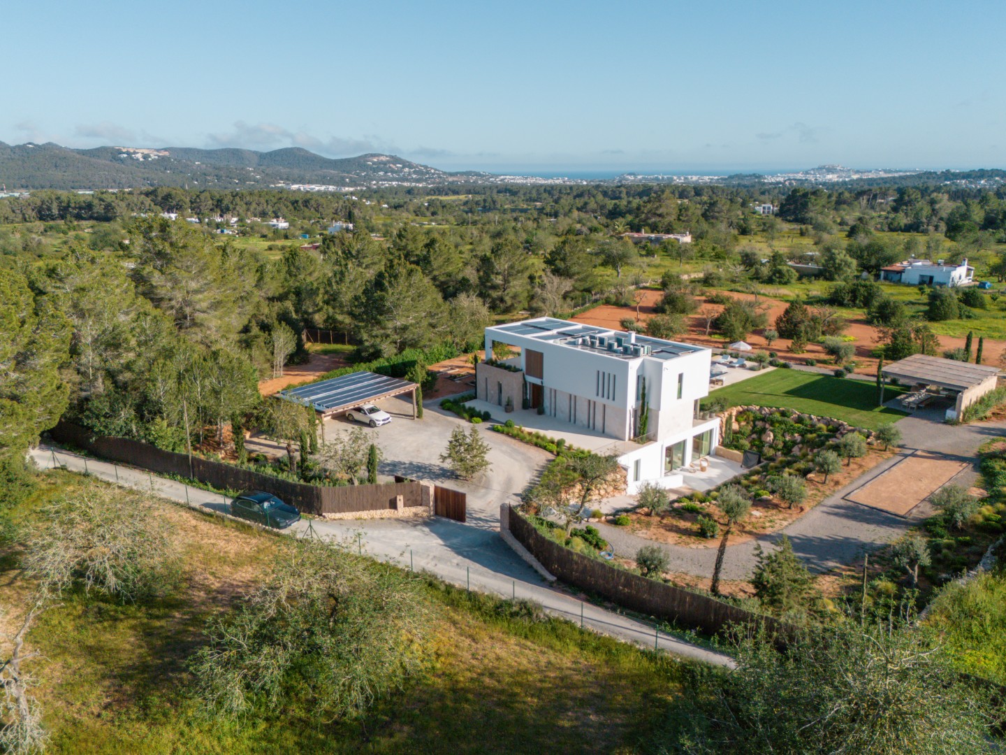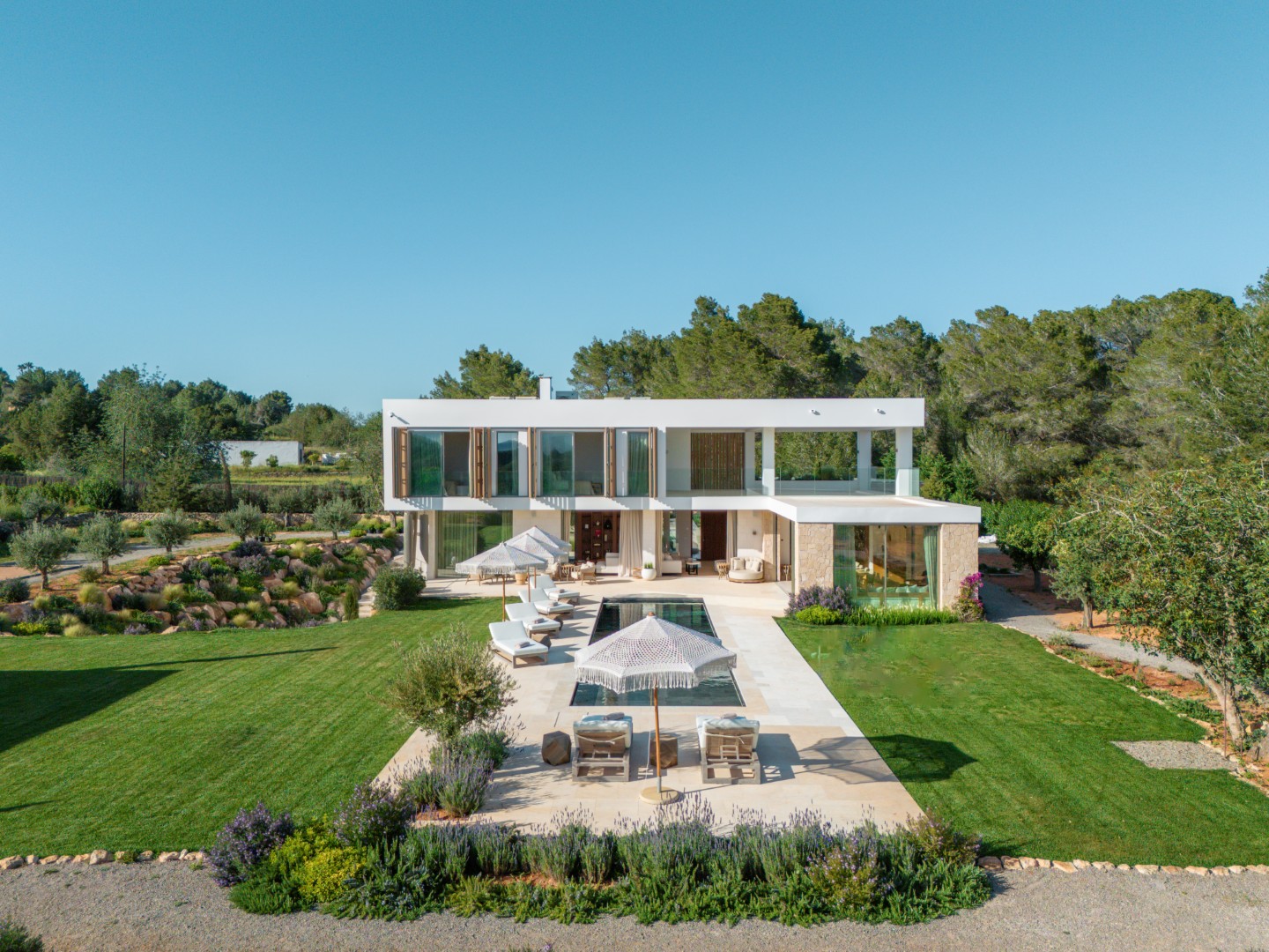 Can Nima Ibiza ist eine anspruchsvolle Designer-Villa auf einem 16.500 m² großen privaten mediterranen Grundstück, nur zehn Minuten von Ibiza-Stadt entfernt. Mit sechs eleganten Schlafzimmern mit Bad en suite, panoramischem Blick auf das Meer und Formentera sowie erstklassigen Annehmlichkeiten wie Spa, Fitnessraum, Kino und Infinity-Pool verbindet sie anspruchsvolles Design mit der Ruhe der ibizenkischen Landschaft.