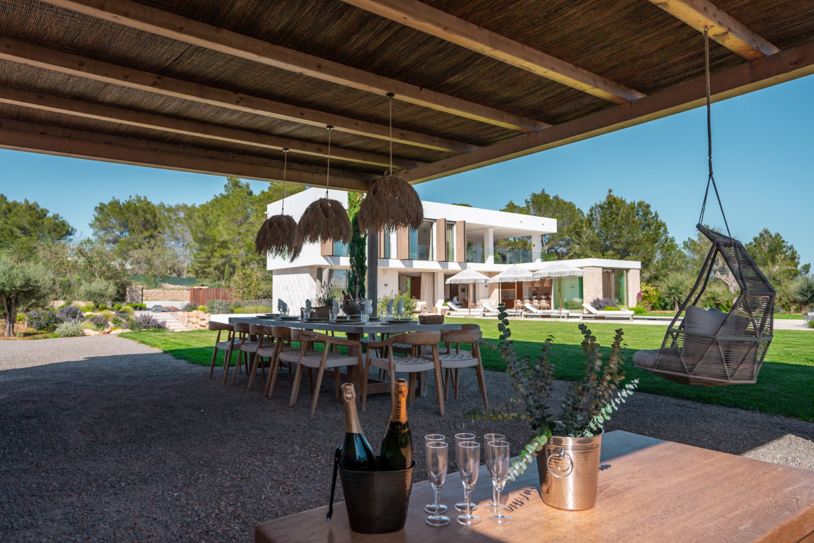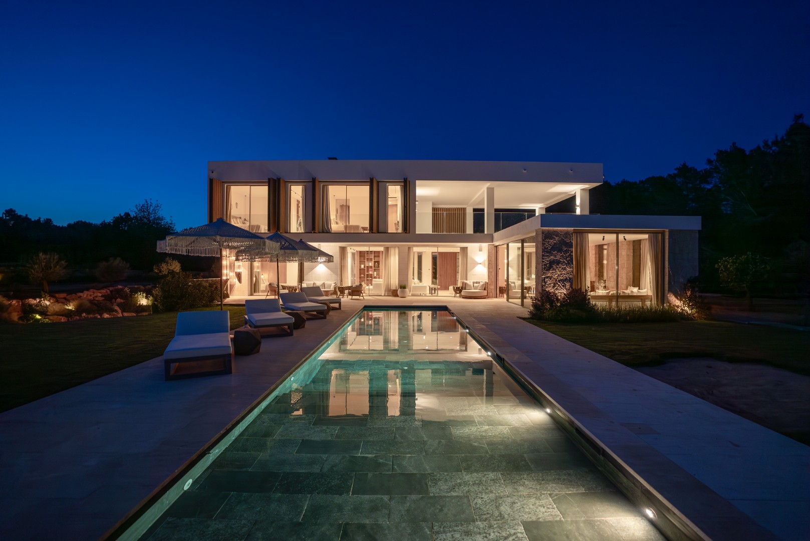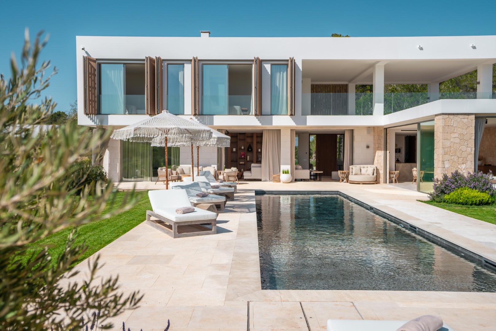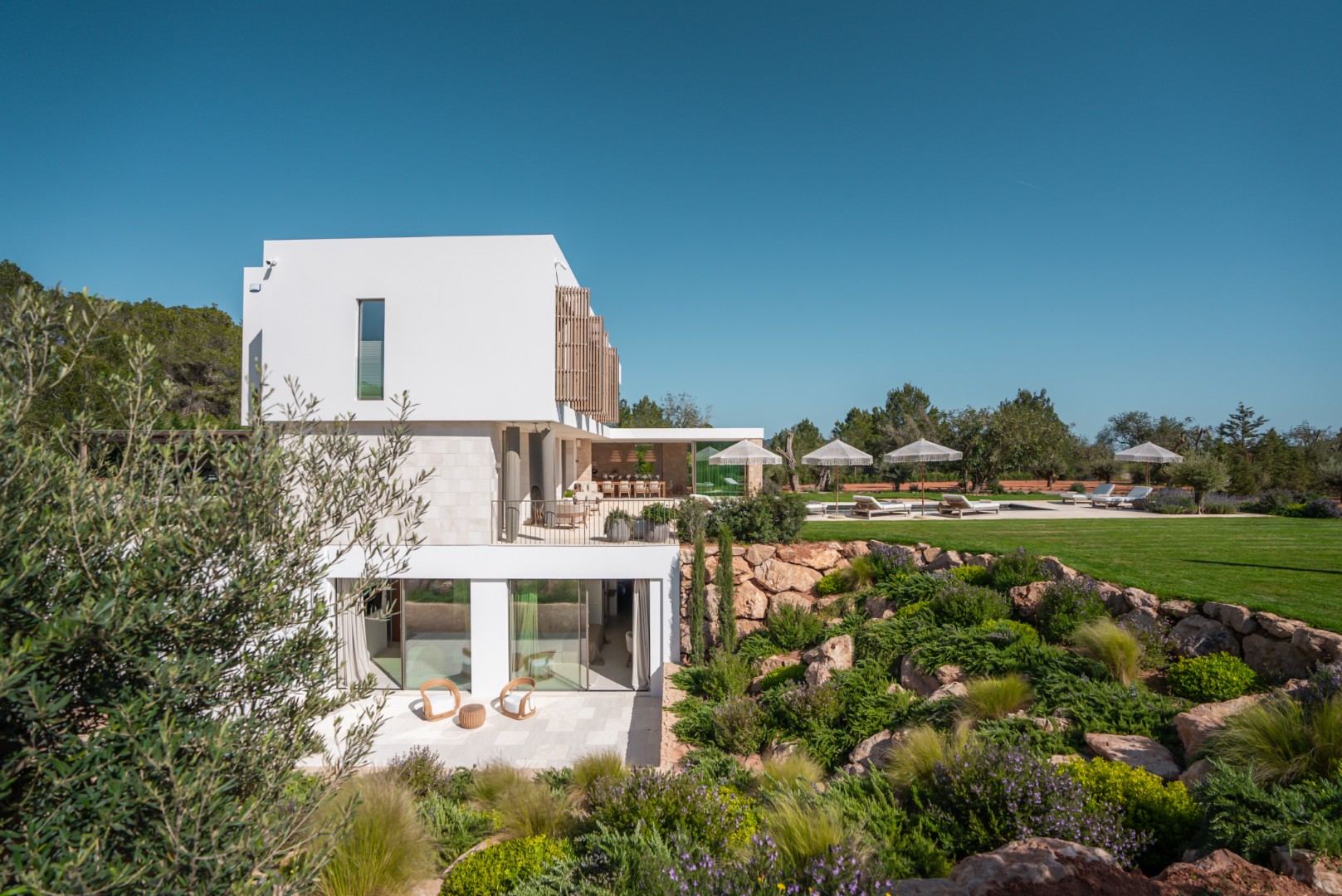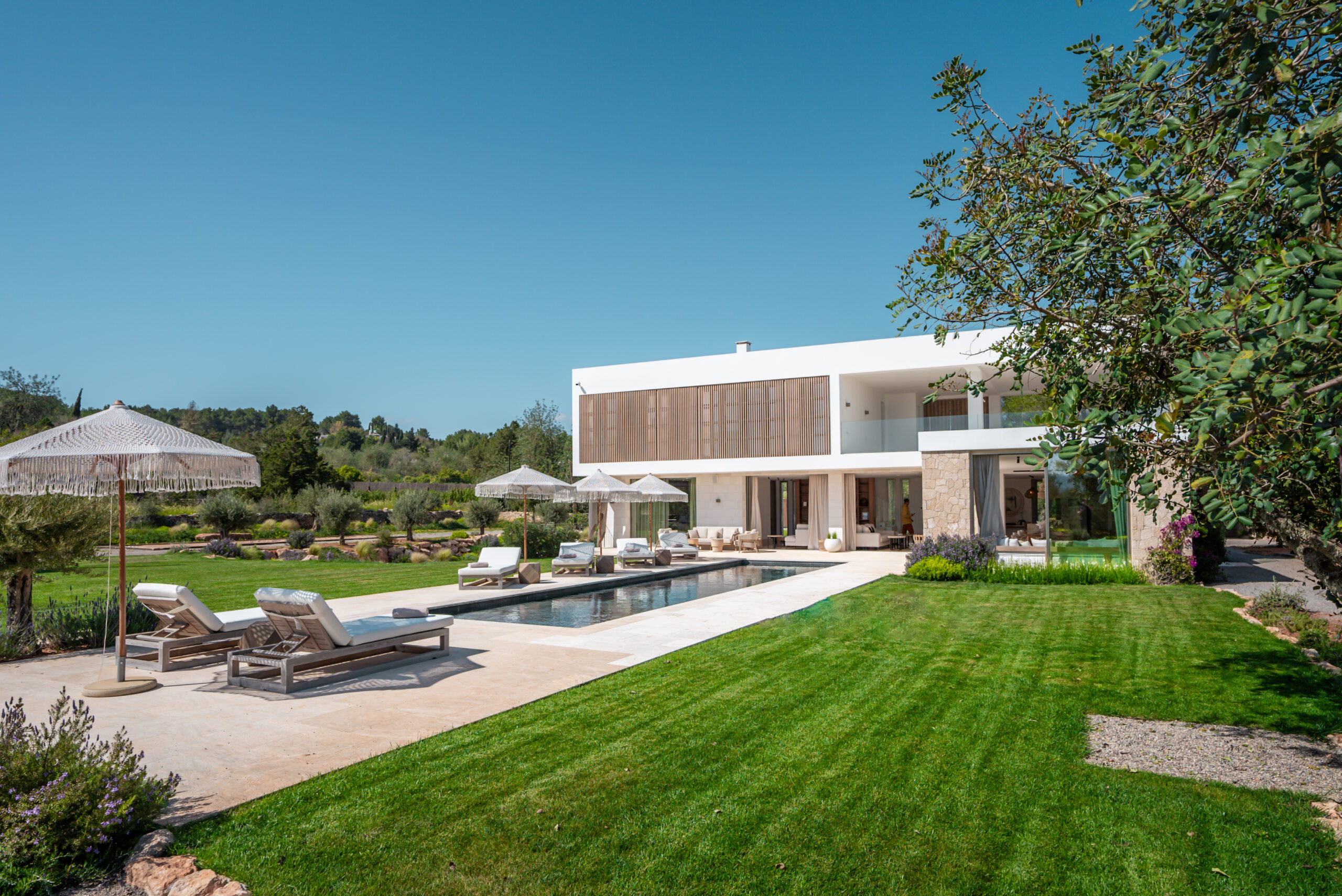Can Nima Ibiza ist eine anspruchsvolle Designer-Villa auf einem 16.500 m² großen privaten mediterranen Grundstück, nur zehn Minuten von Ibiza-Stadt entfernt. Mit sechs eleganten Schlafzimmern mit Bad en suite, panoramischem Blick auf das Meer und Formentera sowie erstklassigen Annehmlichkeiten wie Spa, Fitnessraum, Kino und Infinity-Pool verbindet sie anspruchsvolles Design mit der Ruhe der ibizenkischen Landschaft.
