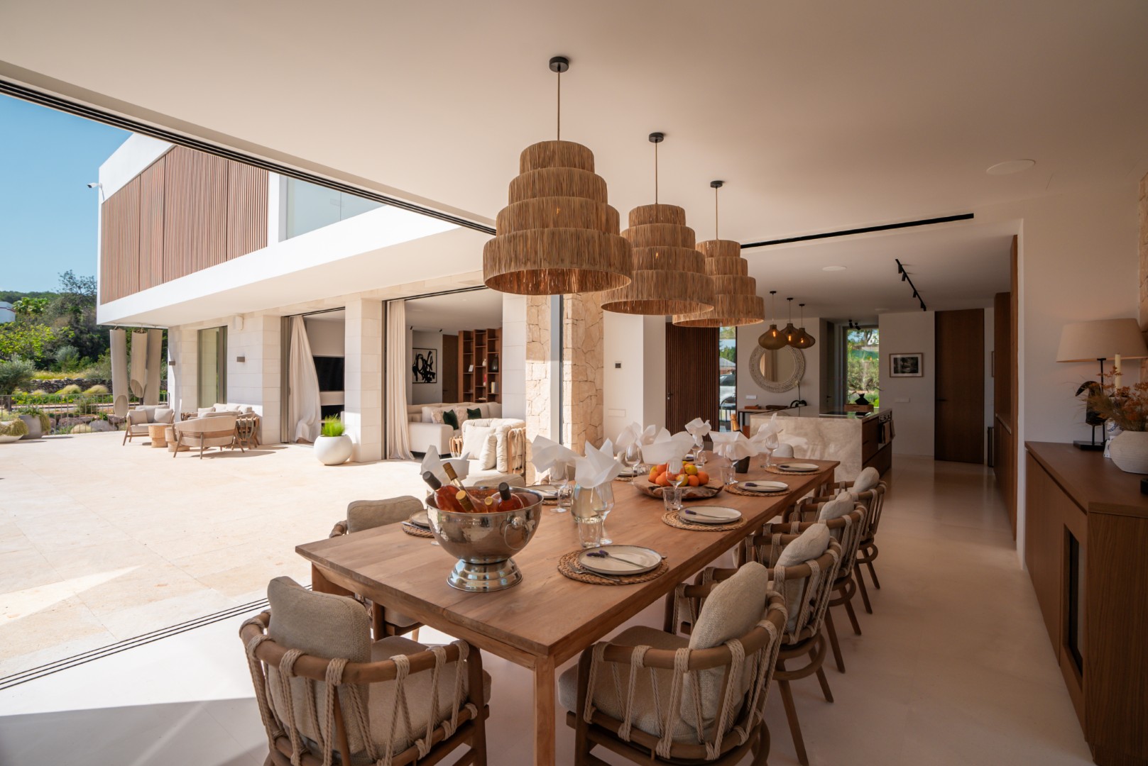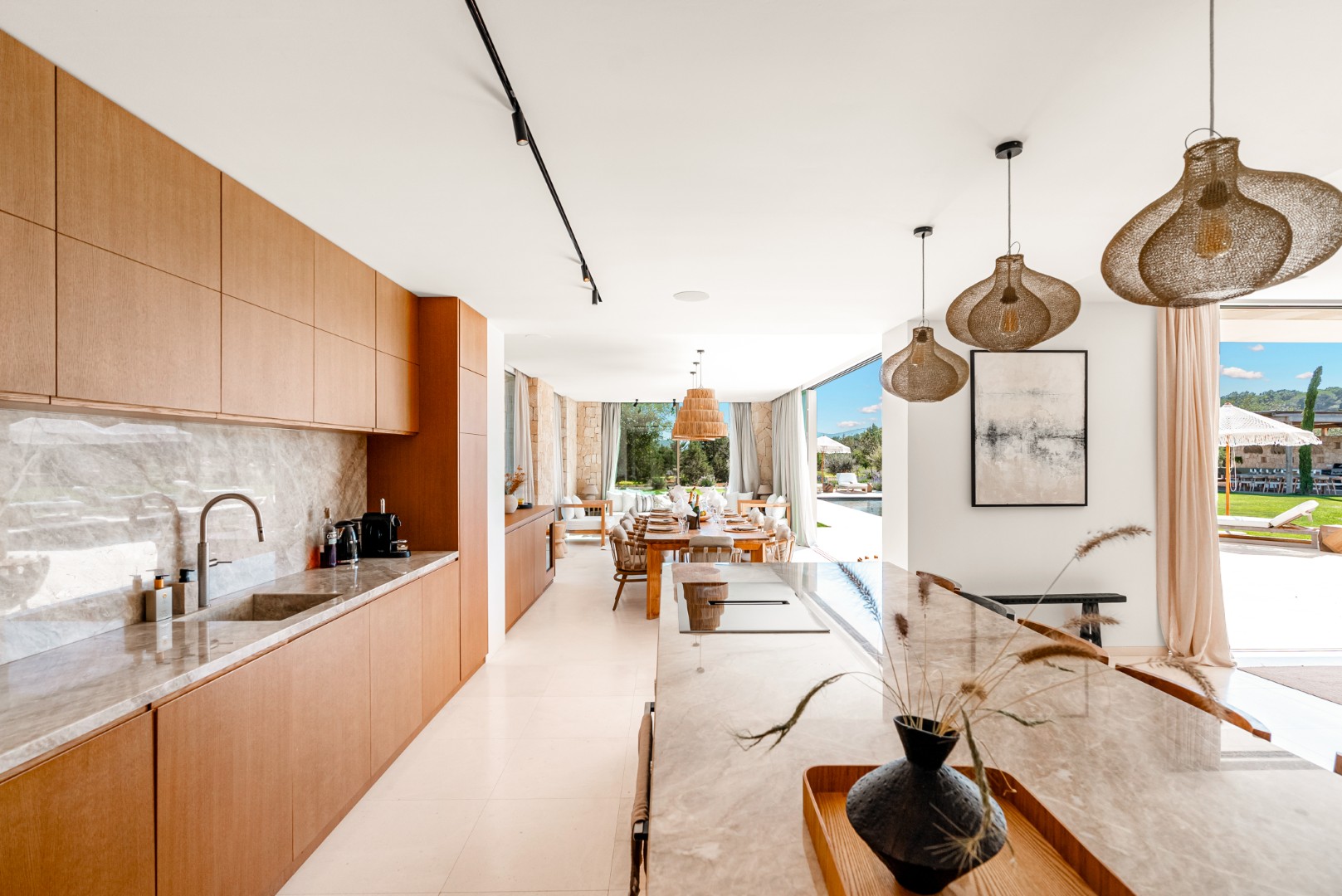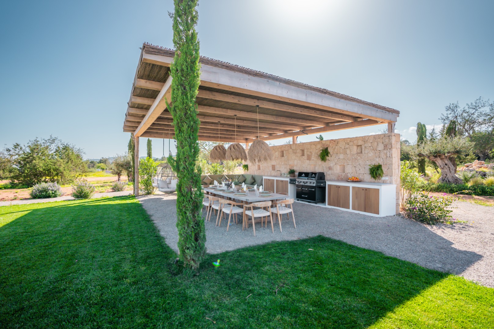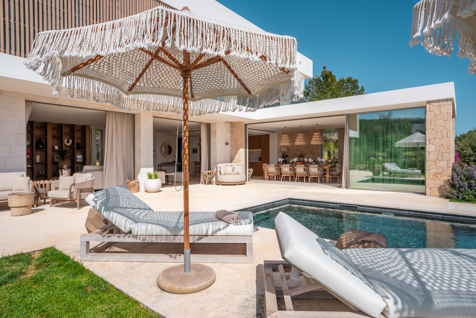 Can Nima Ibiza ist eine anspruchsvolle Designer-Villa auf einem 16.500 m² großen privaten mediterranen Grundstück, nur zehn Minuten von Ibiza-Stadt entfernt. Mit sechs eleganten Schlafzimmern mit Bad en suite, panoramischem Blick auf das Meer und Formentera sowie erstklassigen Annehmlichkeiten wie Spa, Fitnessraum, Kino und Infinity-Pool verbindet sie anspruchsvolles Design mit der Ruhe der ibizenkischen Landschaft.
