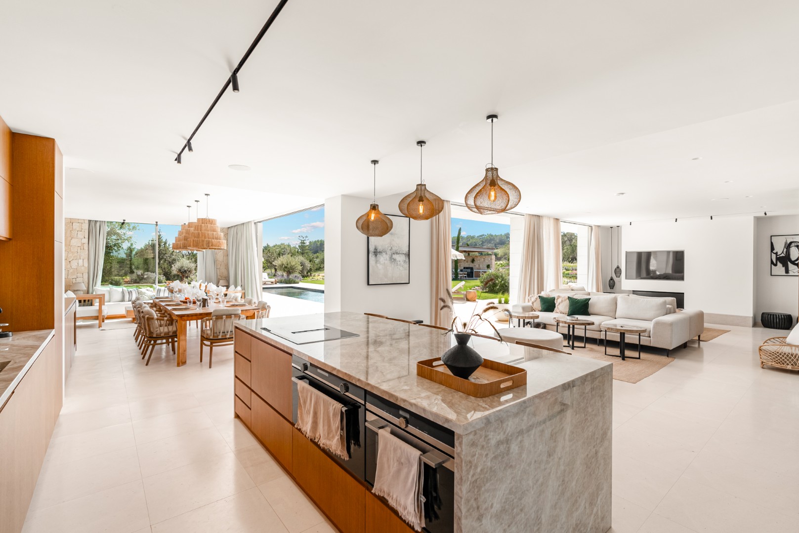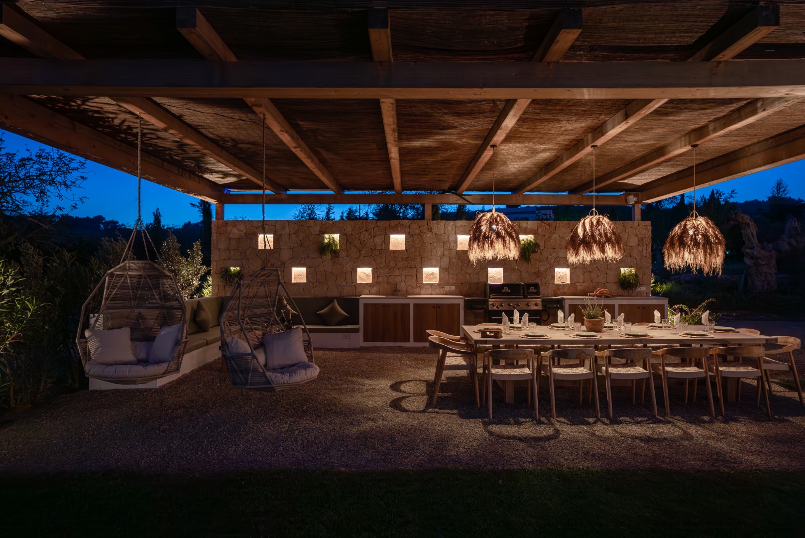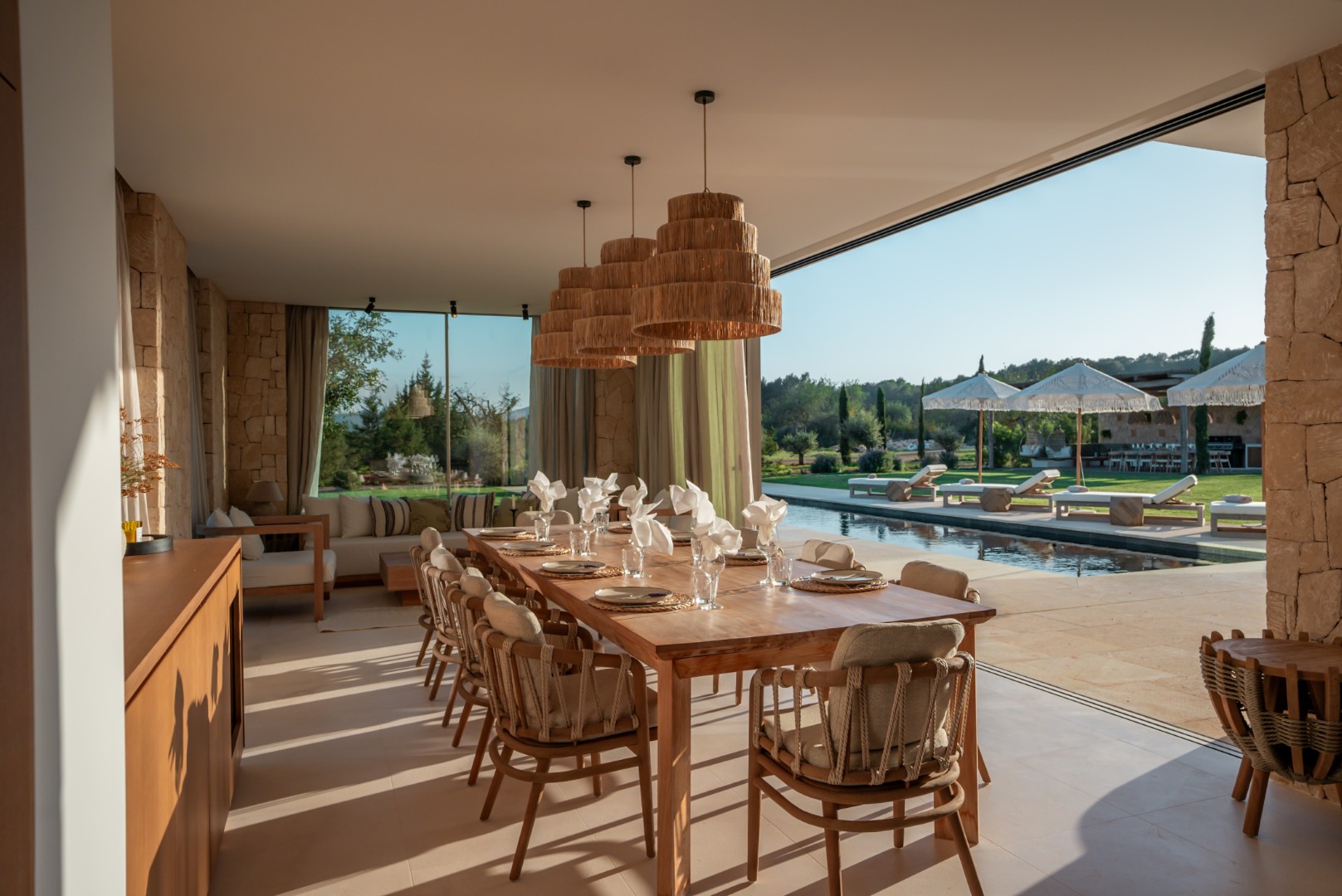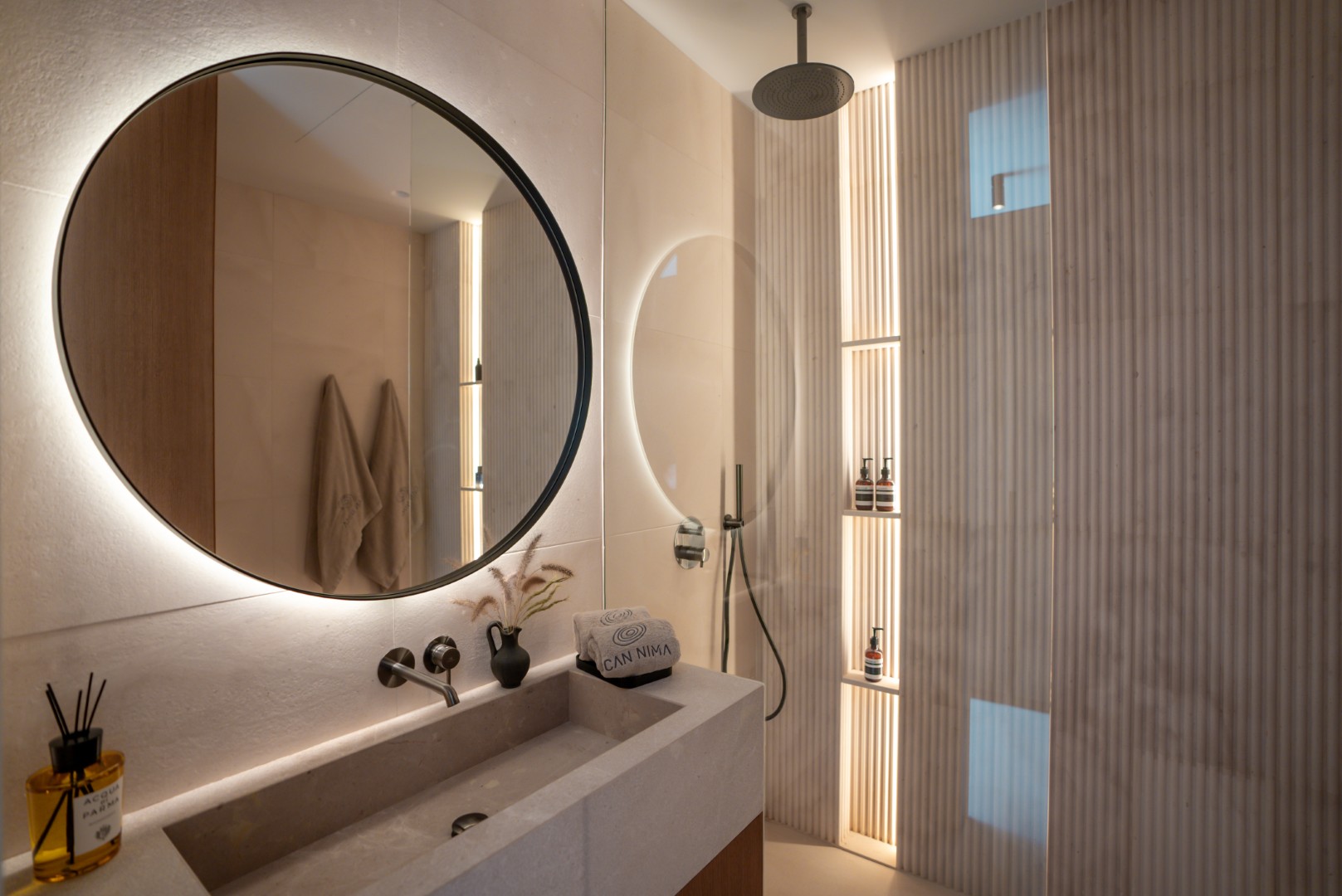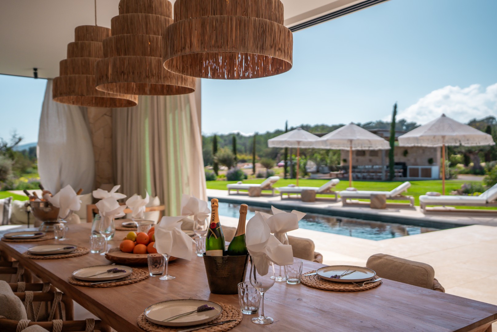 Can Nima Ibiza ist eine anspruchsvolle Designer-Villa auf einem 16.500 m² großen privaten mediterranen Grundstück, nur zehn Minuten von Ibiza-Stadt entfernt. Mit sechs eleganten Schlafzimmern mit Bad en suite, panoramischem Blick auf das Meer und Formentera sowie erstklassigen Annehmlichkeiten wie Spa, Fitnessraum, Kino und Infinity-Pool verbindet sie anspruchsvolles Design mit der Ruhe der ibizenkischen Landschaft.