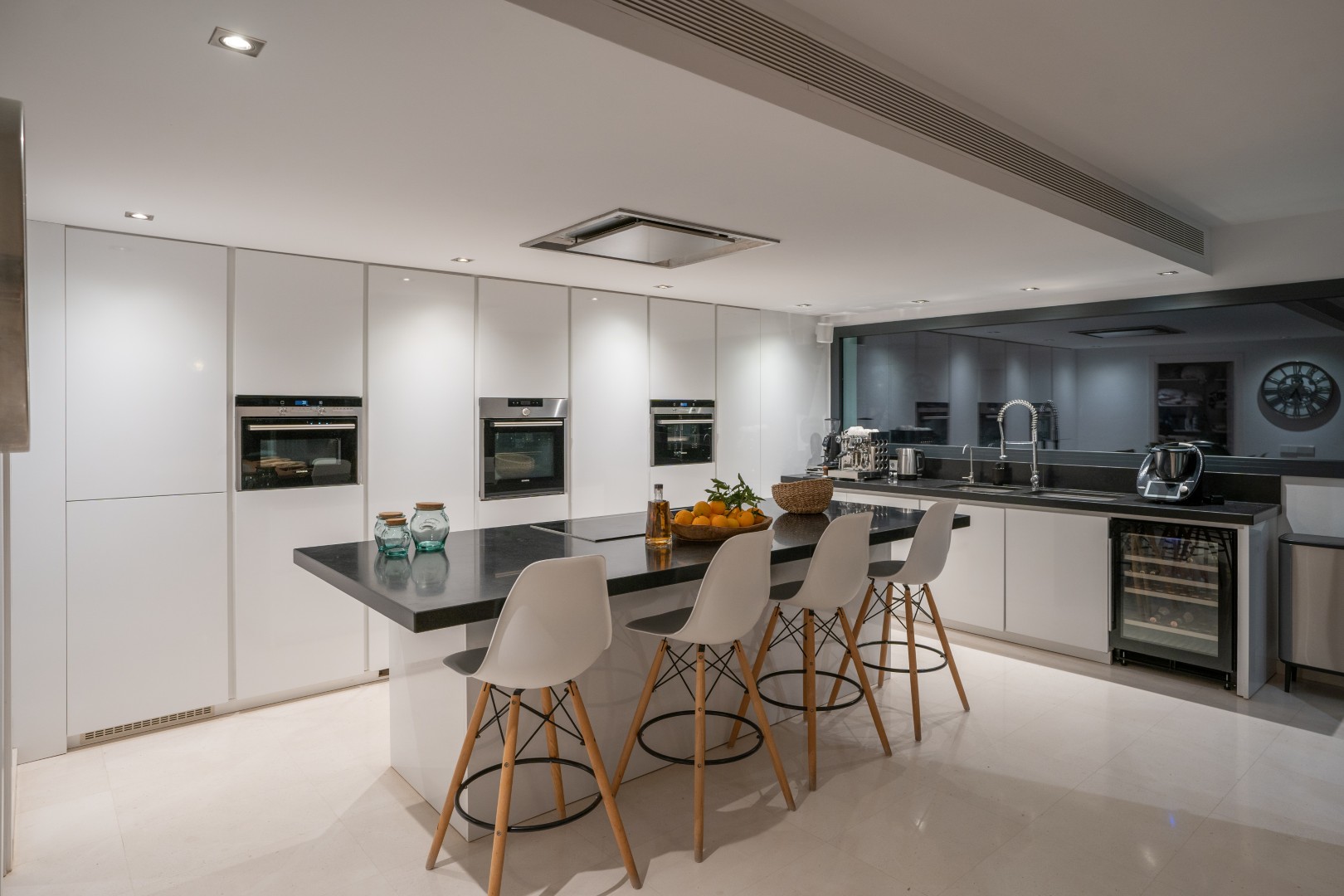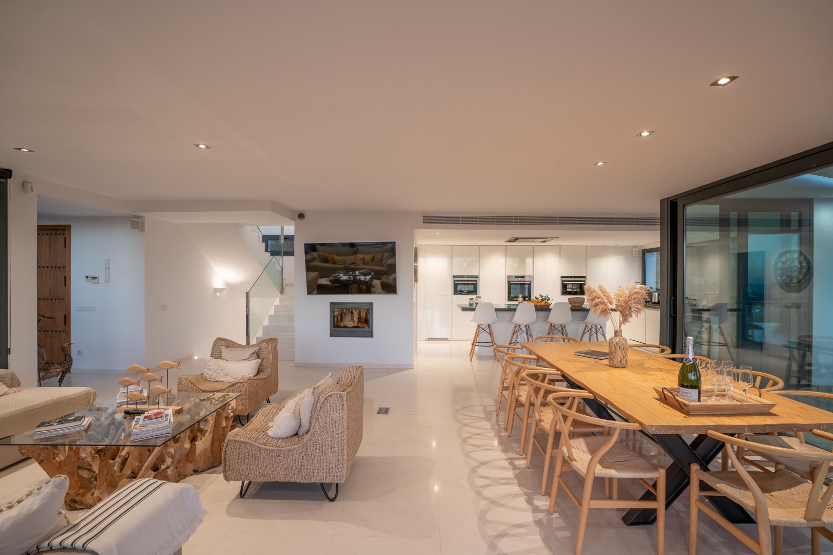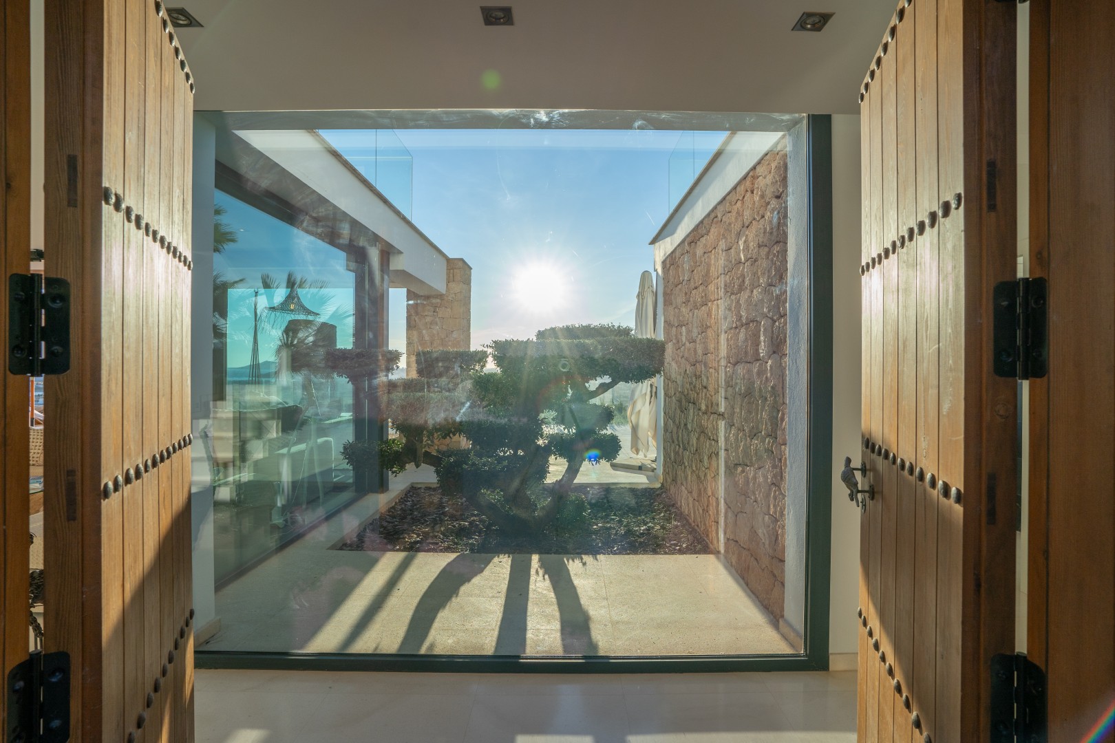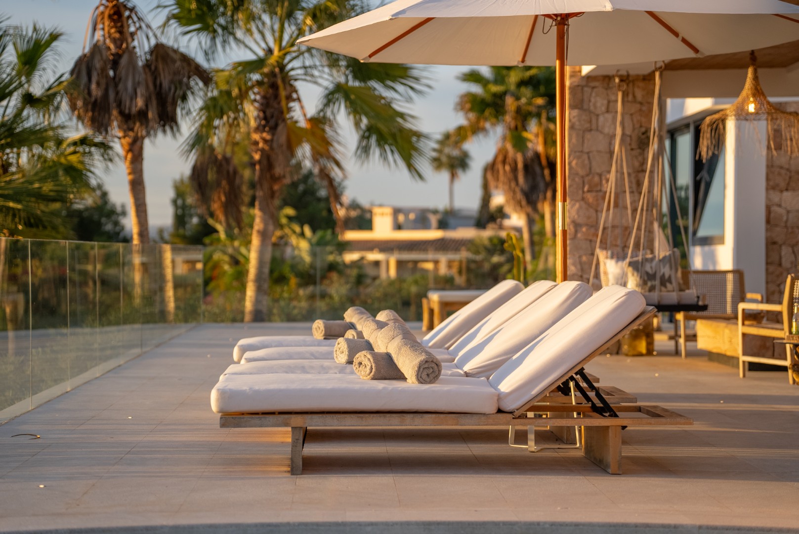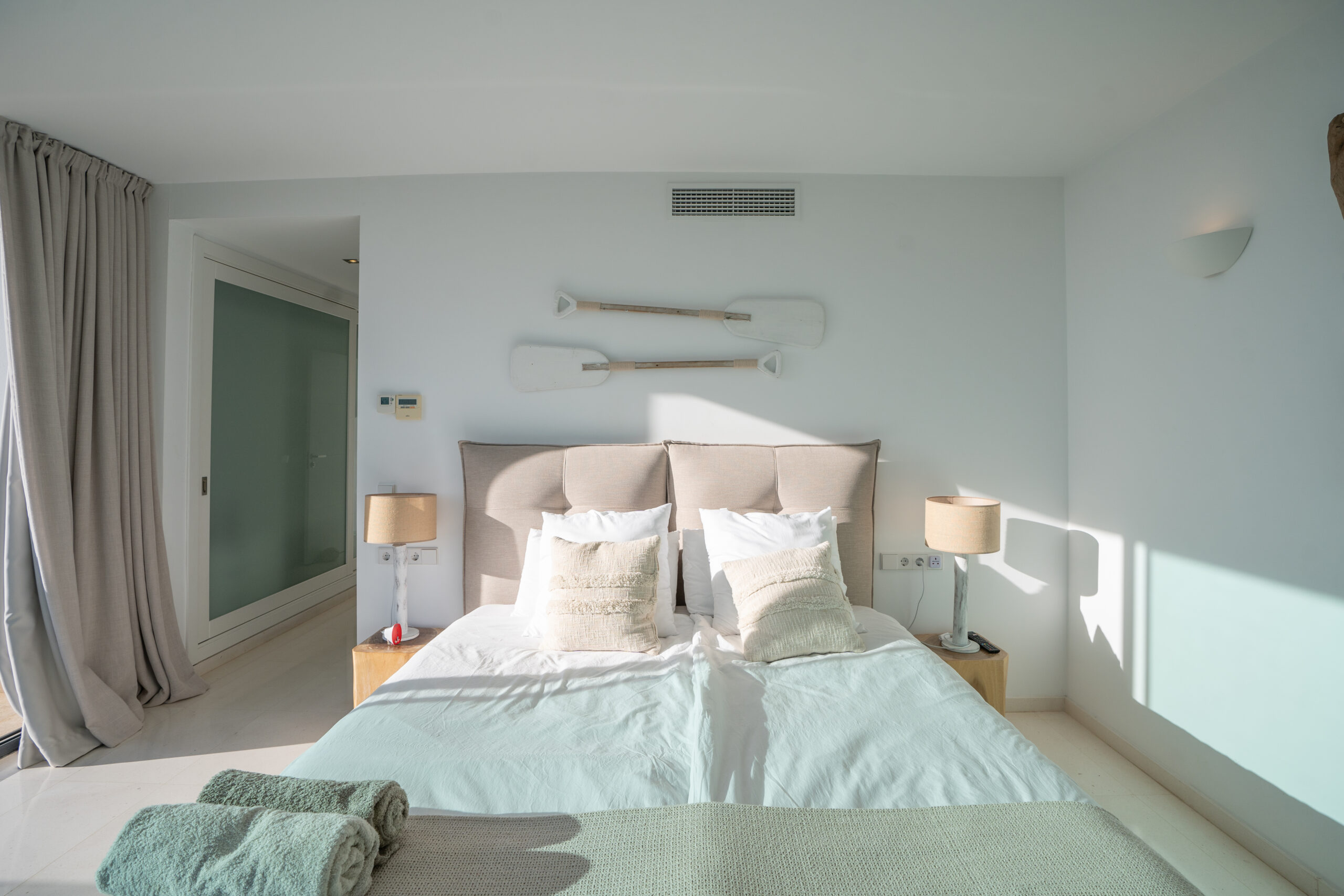 Im Außenbereich erstreckt sich der 18 Meter lange Infinity-Pool dem Horizont entgegen, umrahmt von Terrassen, die zum Sonnenbaden, Essen im Freien und geselligen Abenden einladen. Der umliegende mediterrane Garten mit Oliven-, Zitronen- und Orangenbäumen verleiht dem Anwesen Wärme und Authentizität. Mit 24-Stunden-Sicherheitsdienst, Highspeed-Internet und eleganten Ausstattungsdetails ist Pura Vista ein privates Refugium, das Luxus, Komfort und die schönsten Küstenlandschaften Ibizas vereint.