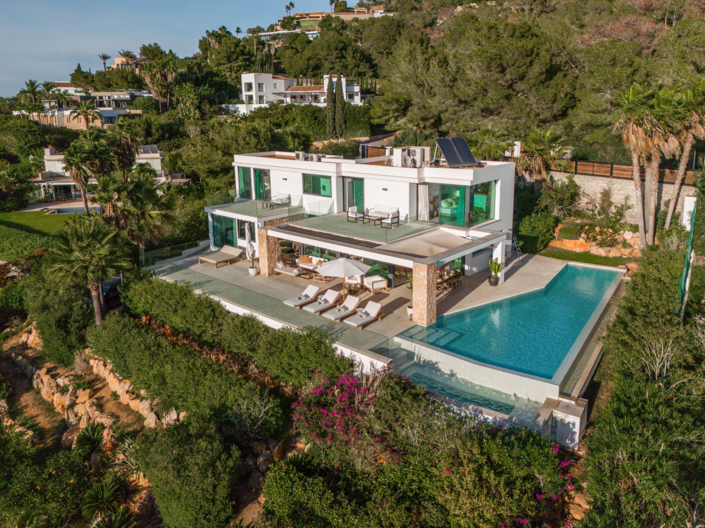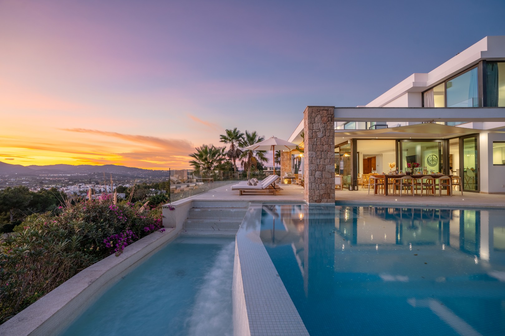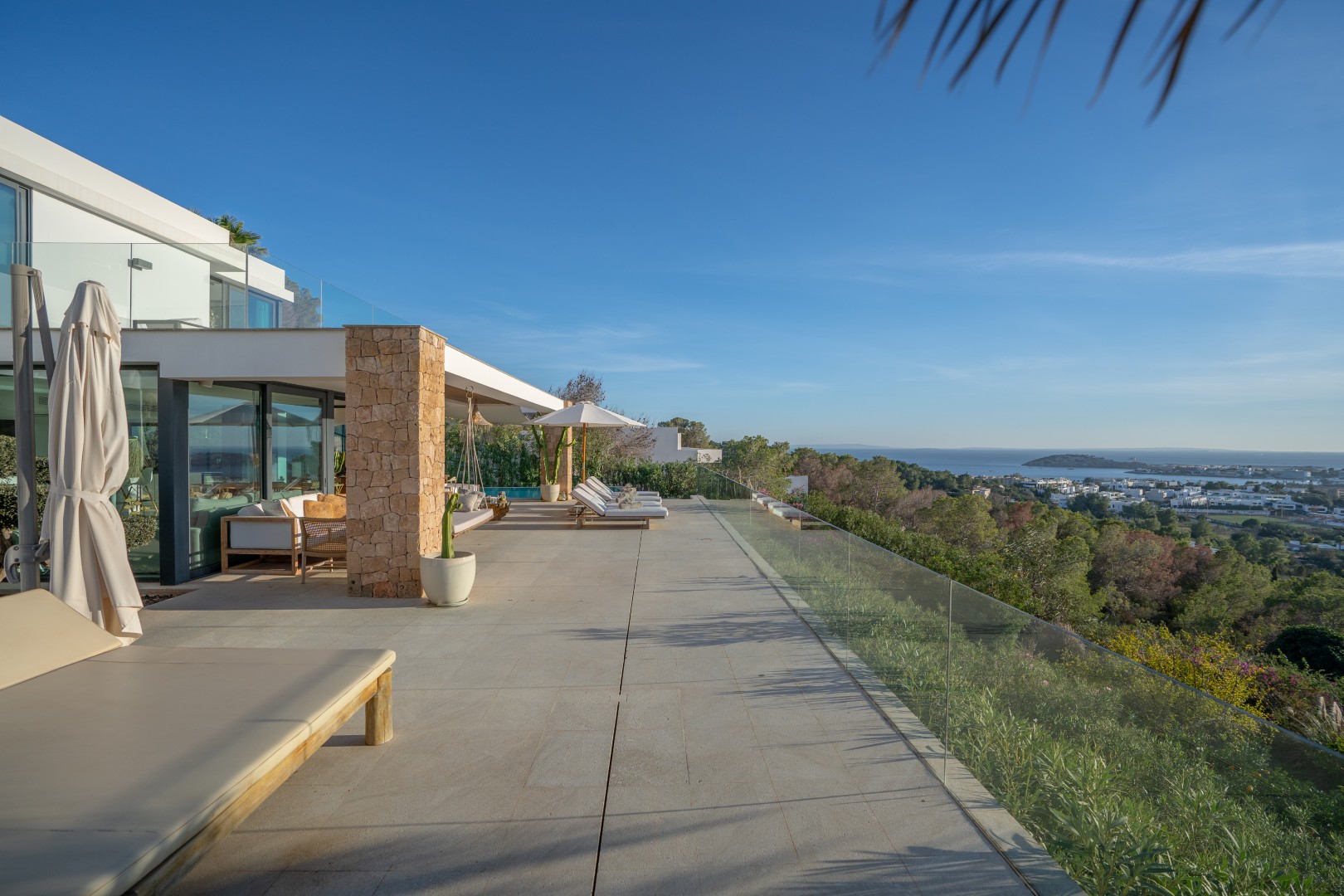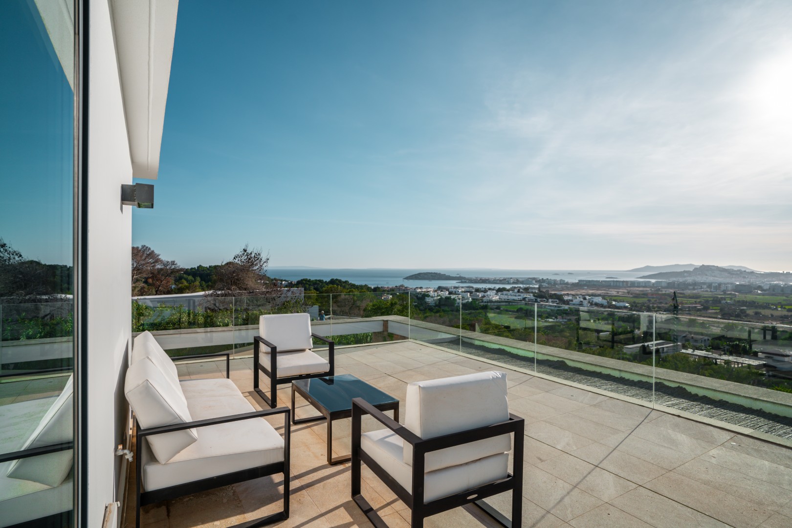 Pura Vista ist eine moderne Luxusvilla mit einem 270-Grad-Panoramablick über Ibiza-Stadt und die Küstenlinie. Mit fünf eleganten Schlafzimmern, einem 18 Meter langen Infinity-Pool und einer harmonischen Verbindung aus zeitgenössischem Design und mediterranem Charme bietet sie ein außergewöhnliches Ambiente für Entspannung und stilvolles Wohnen.