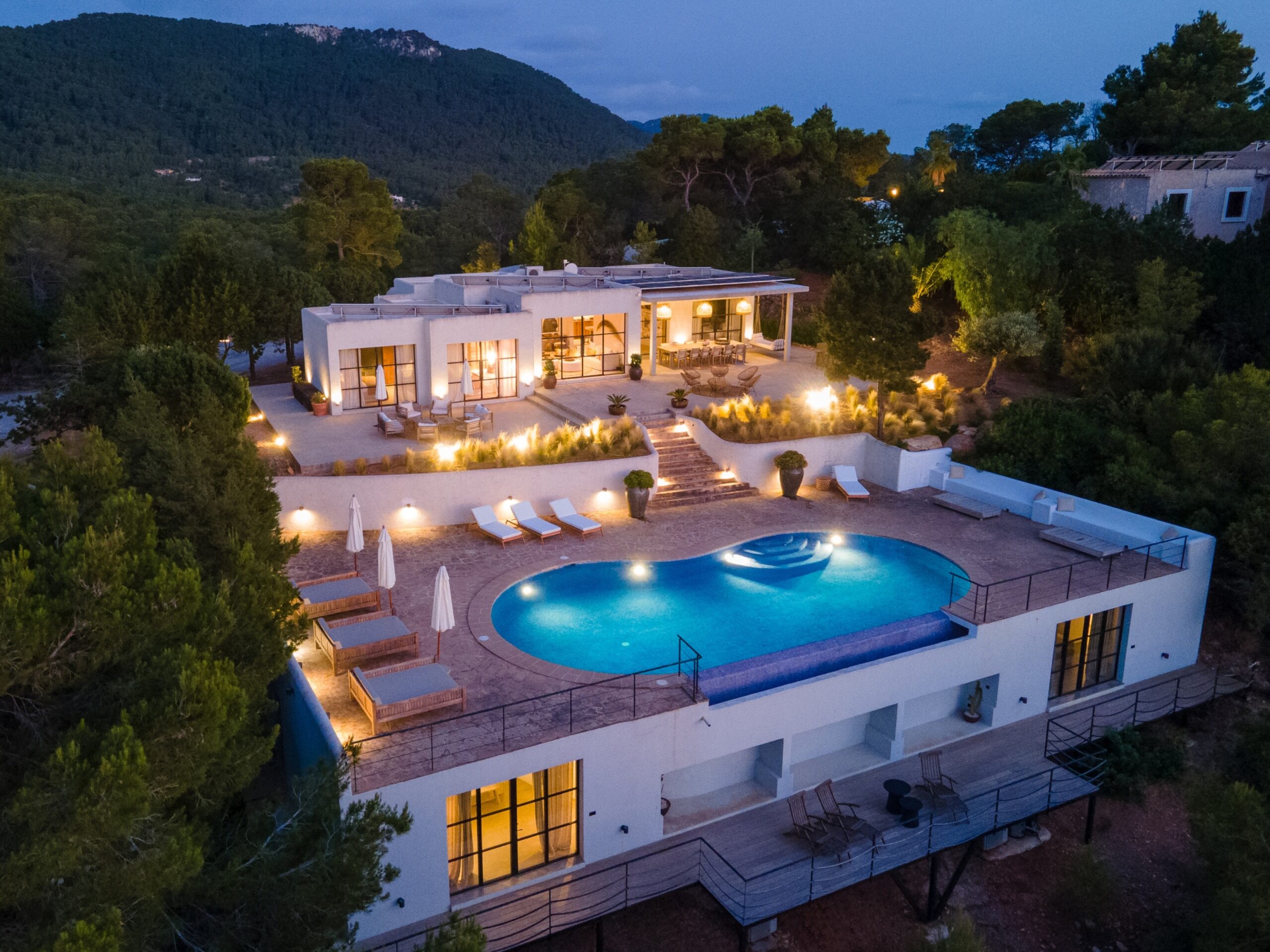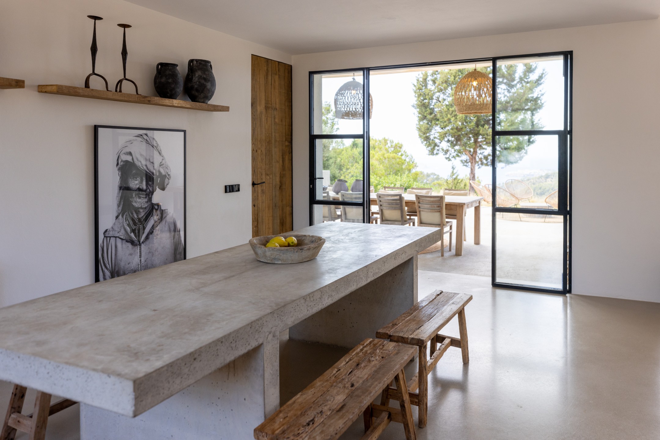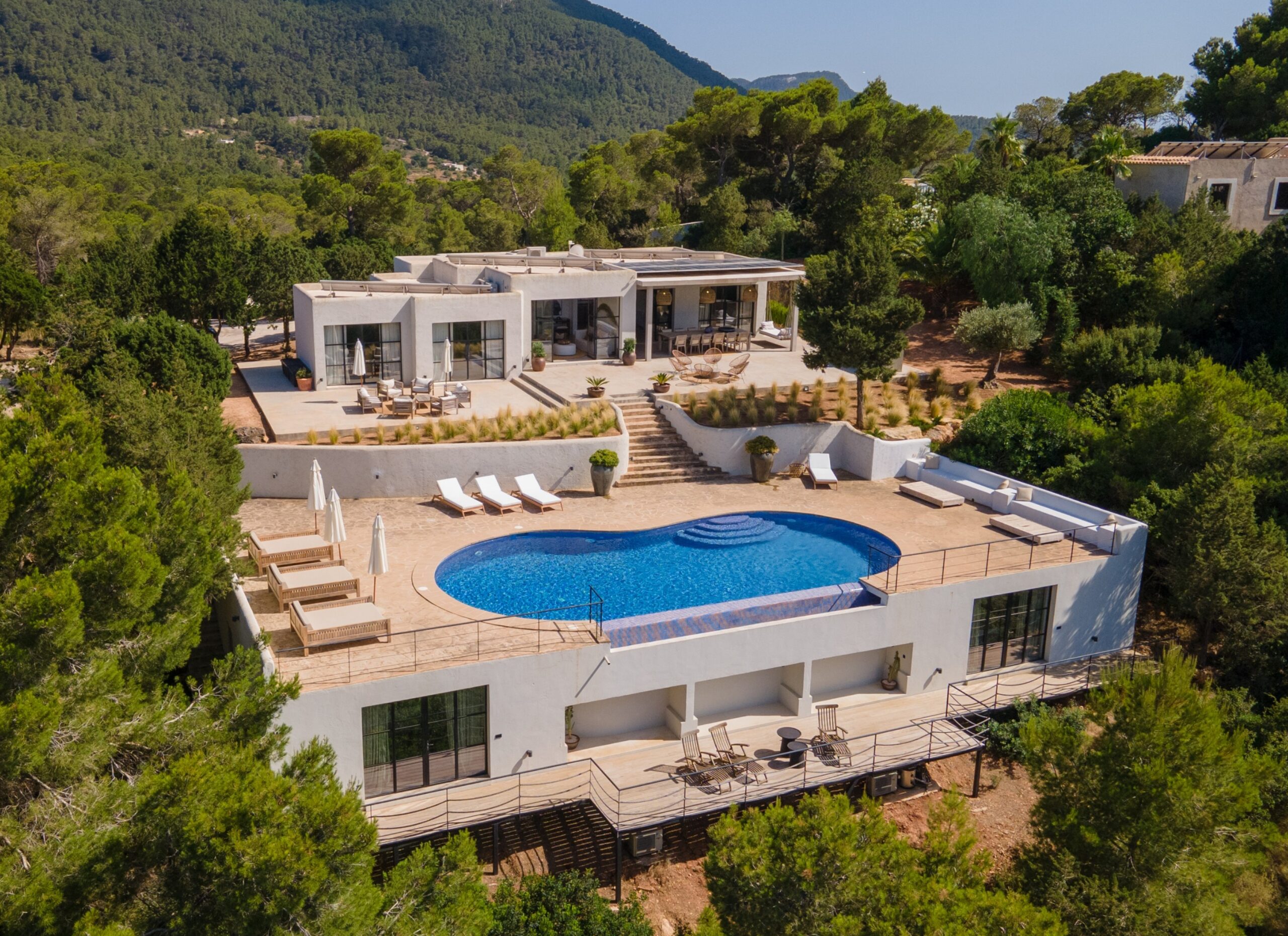 Ubicada en las colinas cerca de San Josep, Can Nebu combina la calidez de la arquitectura tradicional con el confort moderno. El interior refinado de la villa presenta tonos suaves, acabados artesanales y texturas naturales que crean una sensación de lujo discreto. La casa principal incluye tres dormitorios, una luminosa cocina de concepto abierto y un amplio salón-comedor que se abre directamente a terrazas sombreadas. Una casa de invitados independiente añade dos dormitorios adicionales en suite, proporcionando mayor privacidad.