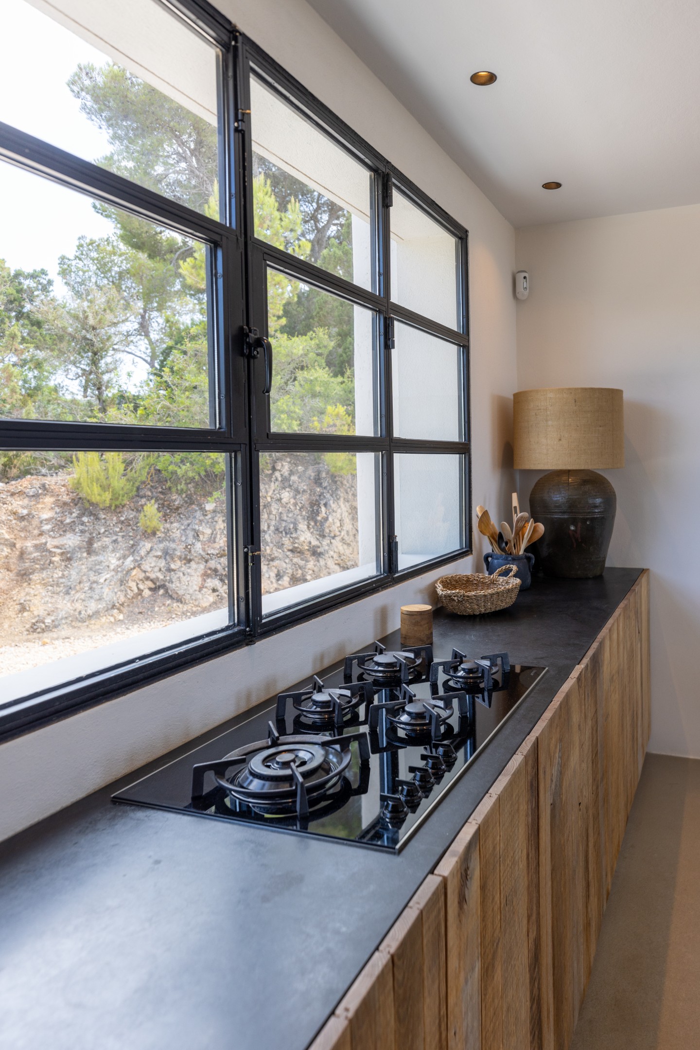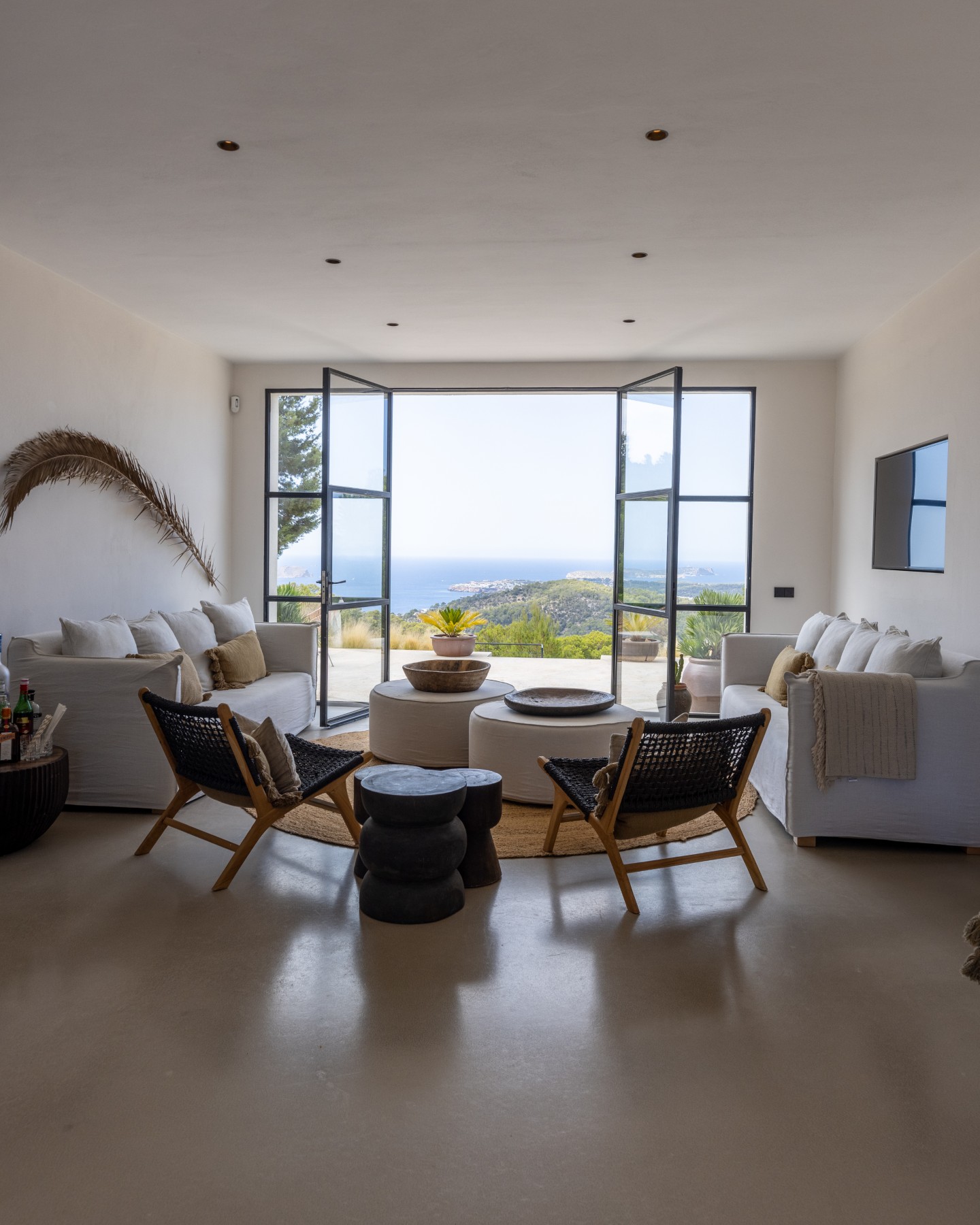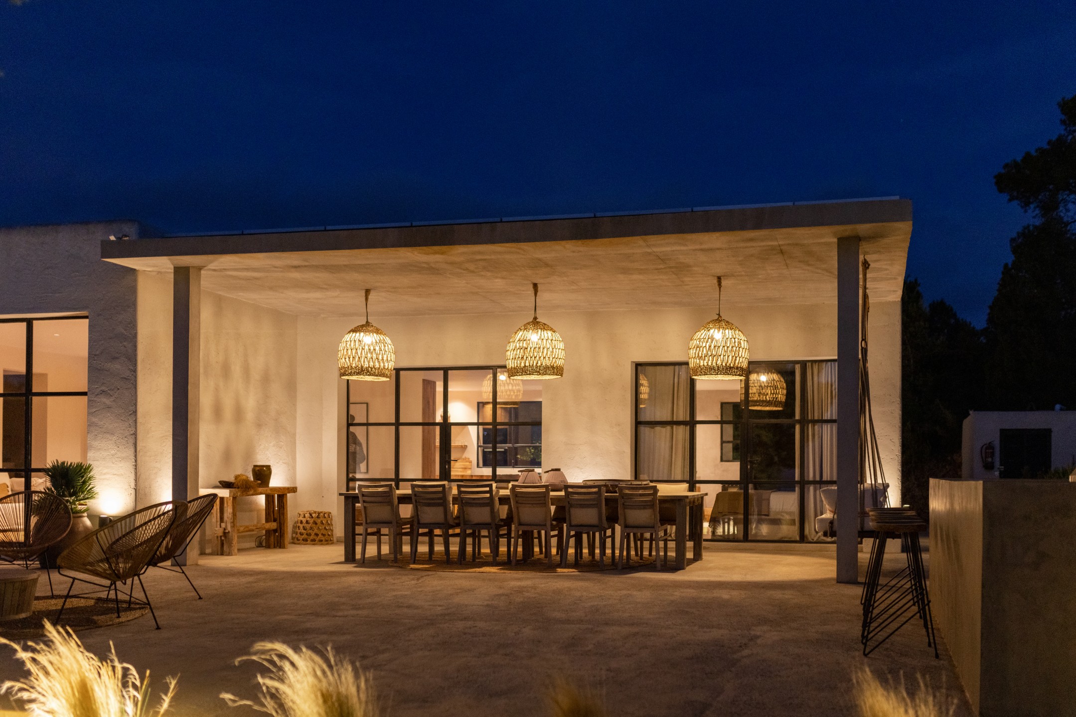 Ubicada en las colinas cerca de San Josep, Can Nebu combina la calidez de la arquitectura tradicional con el confort moderno. El interior refinado de la villa presenta tonos suaves, acabados artesanales y texturas naturales que crean una sensación de lujo discreto. La casa principal incluye tres dormitorios, una luminosa cocina de concepto abierto y un amplio salón-comedor que se abre directamente a terrazas sombreadas. Una casa de invitados independiente añade dos dormitorios adicionales en suite, proporcionando mayor privacidad.