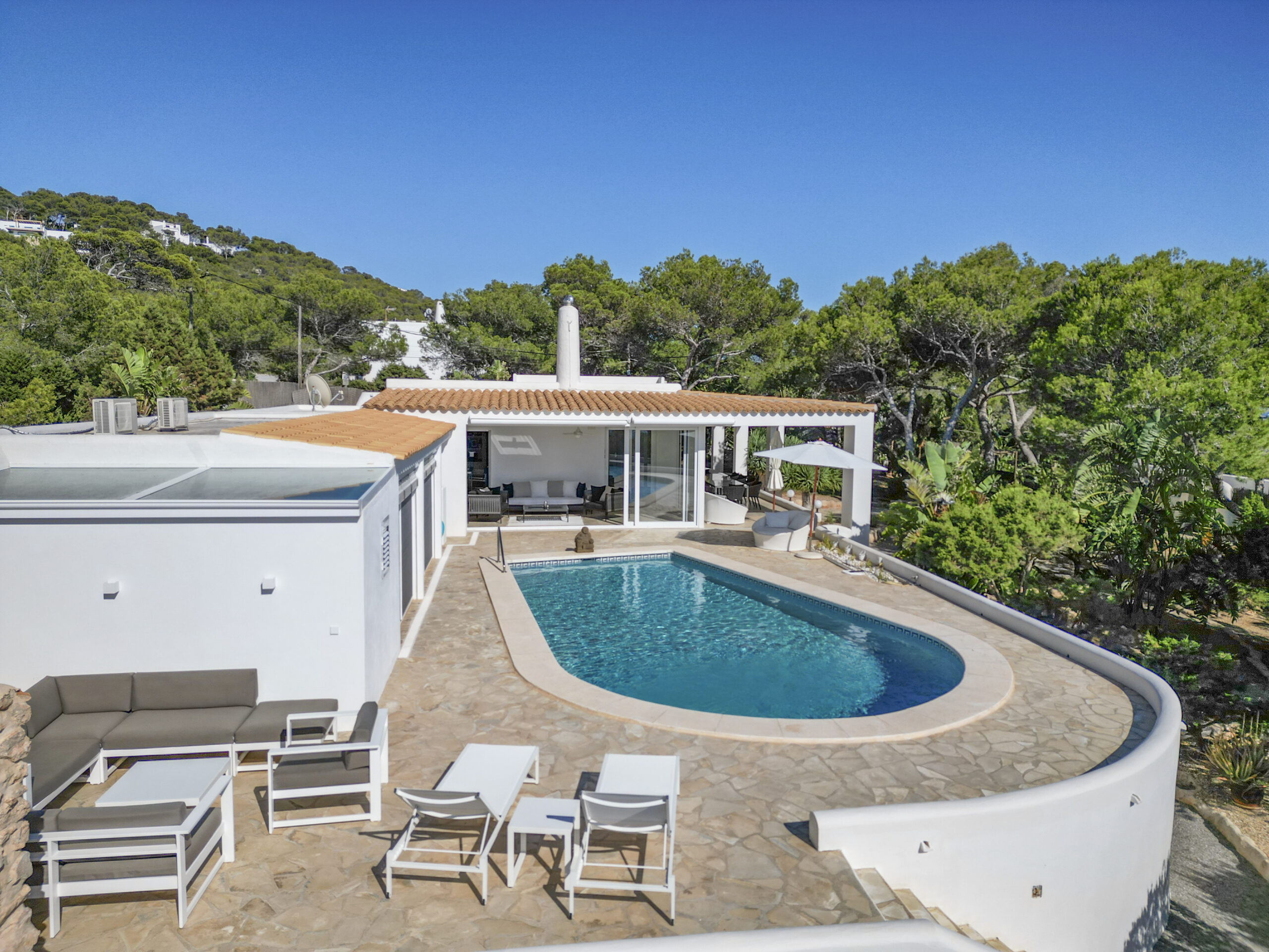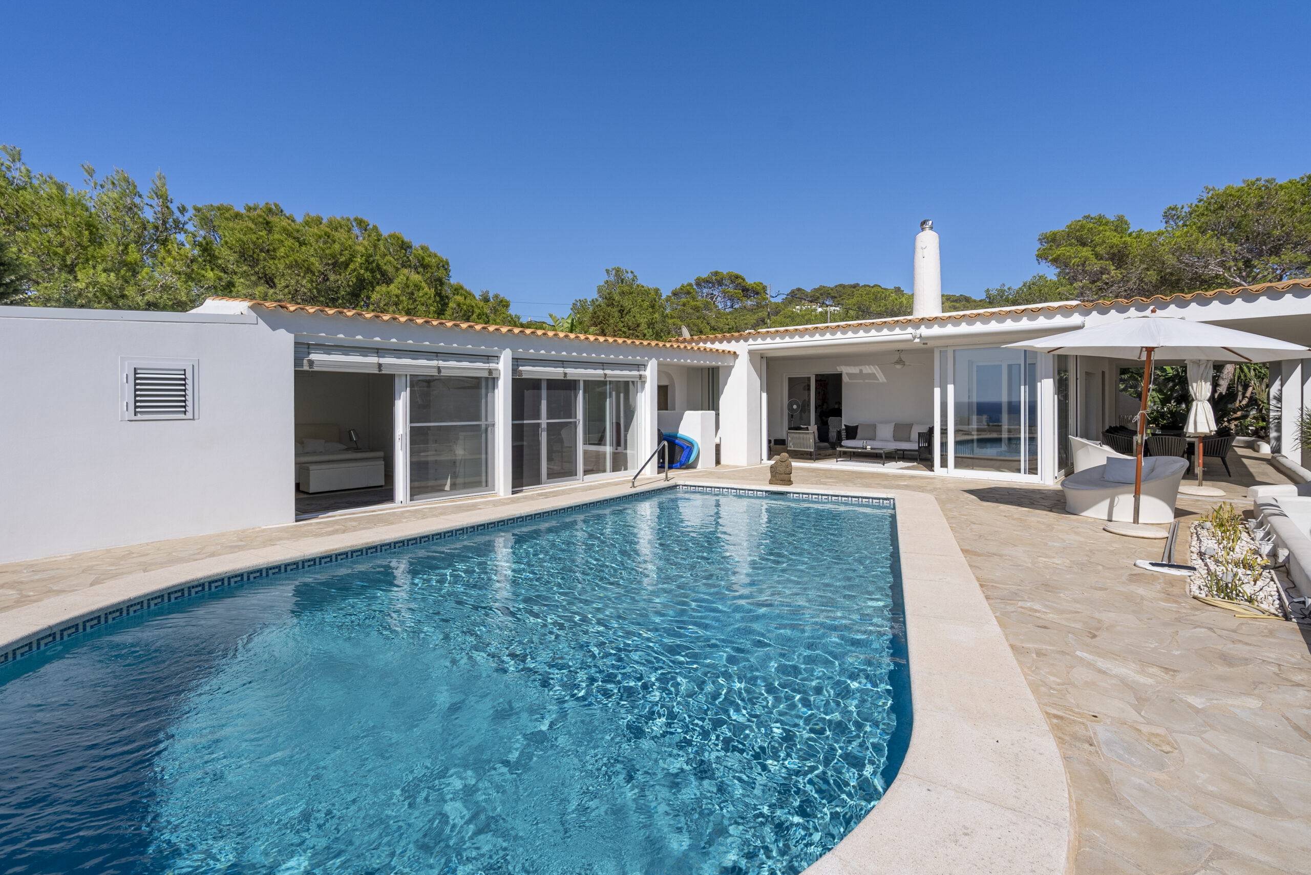 Set on the rocky coastline near San Antonio, Sunset Torre is a serene frontline retreat with sea views and warm west-coast sunsets. With four en-suite bedrooms and generous terraces flowing toward a curved pool, the villa blends relaxed island living with timeless Mediterranean charm.